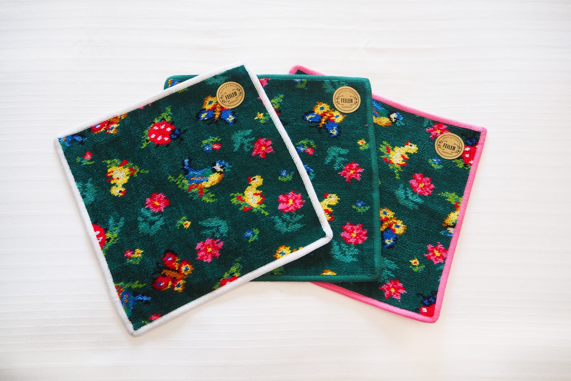 FEILER(フェイラー)の商品の代名詞ともいえるハンカチ。てんとう⾍にちょうちょ、⼩⿃たちや⼩さな花などドイツの野にいる⽣き物たちを織り上げた、⼦どもから⼤⼈まで幅広い年代に⽀持を集める⼈気モチーフ『HEIDI(ハイジ)』をホテルニューオータニのコーポレートカラーに合わせて、限定のオリジナルカラー「ハイジロイヤルグリーン」に。実⽤性・機能性・⾒た⽬すべてにこだわり抜いた、ここでしか⼿に⼊らないオリジナルハンカチです。